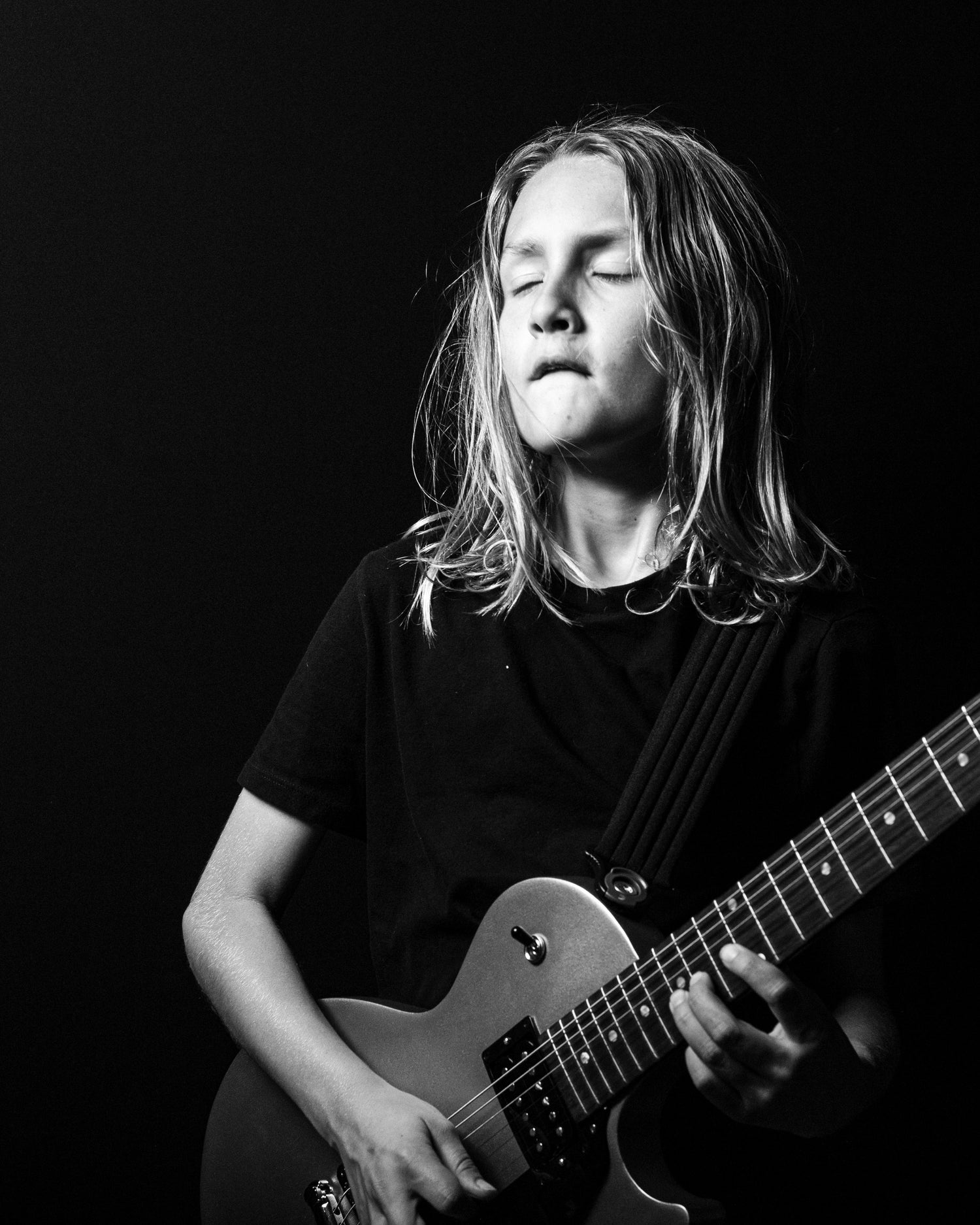 Russell lives in Southern California, with his mom, Anne, on a ranch with plenty of space to rock out and then hang out with his dogs, pigs, chickens, and the hawks that stop by for inspiration. He’s homeschooled to balance his schoolwork, being a kid, traveling to attend as many concerts as possible, and his own burgeoning music career.